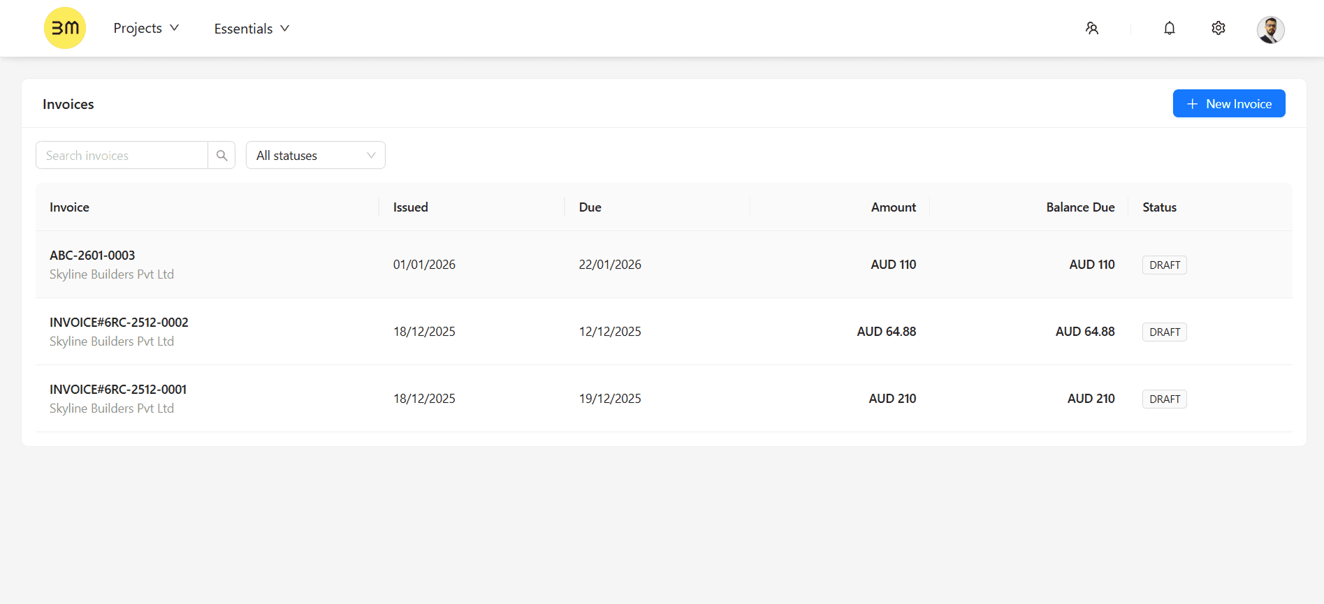 Status Management: Monitor your billing pipeline at a glance by managing statuses such as "Draft" and "Sent" to keep your records accurate.