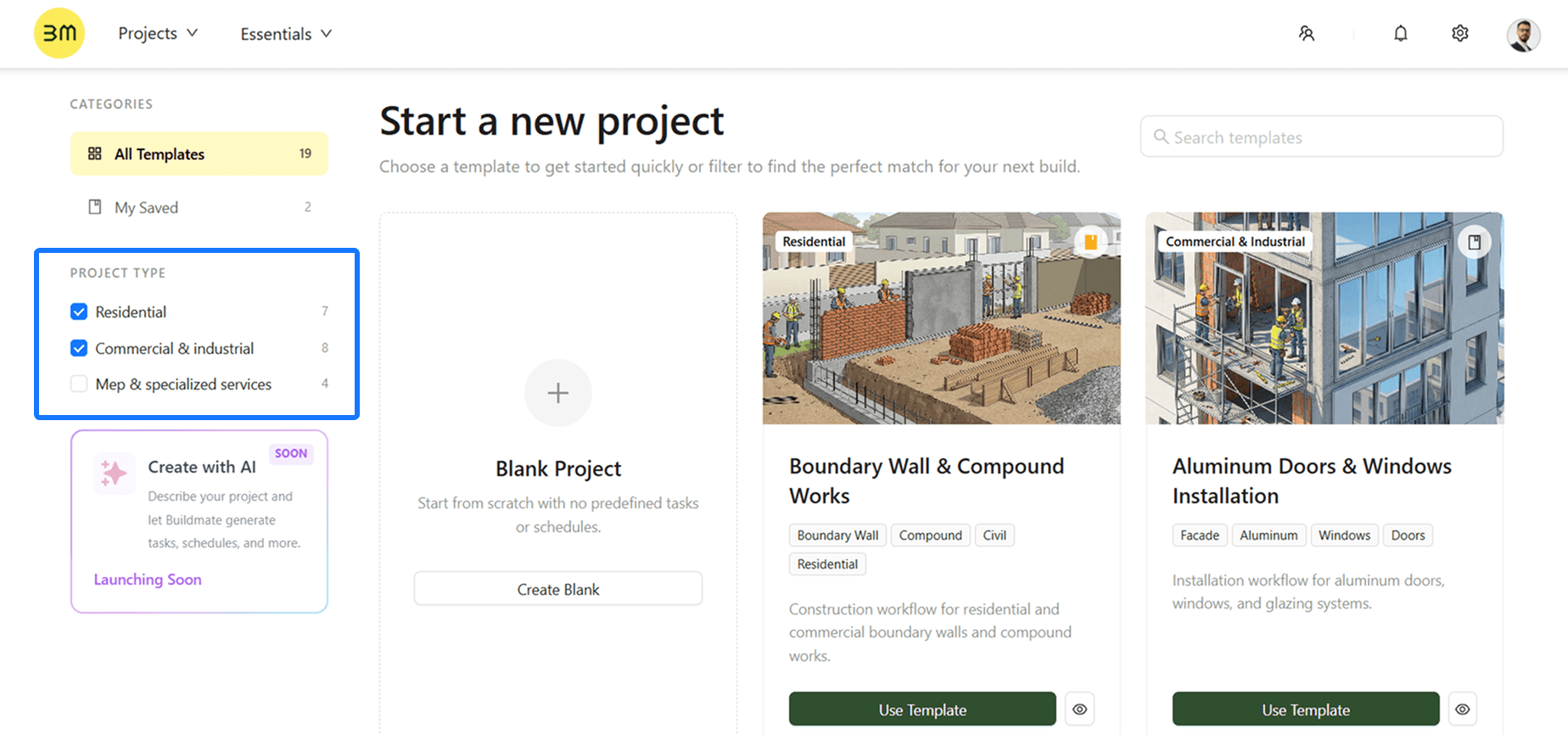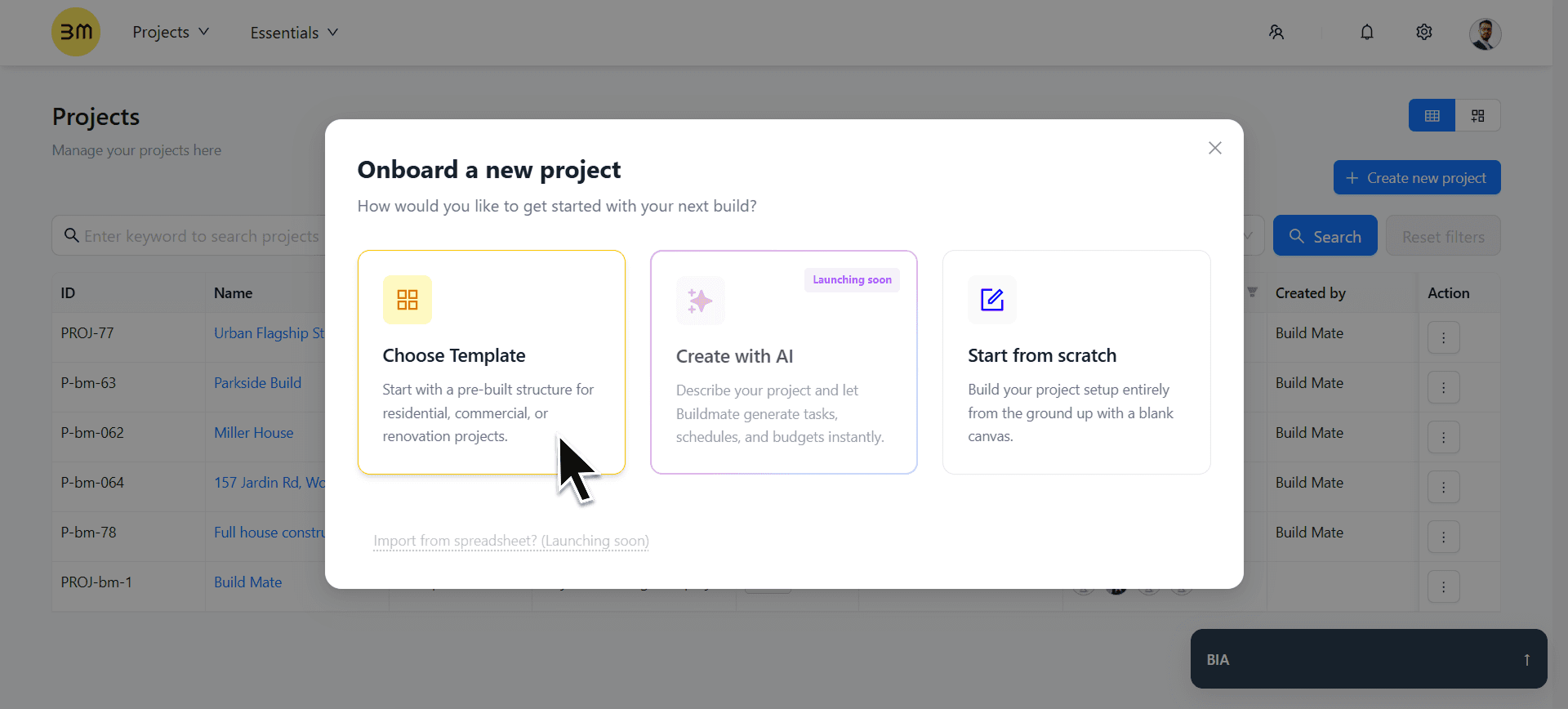 Create with AI (Coming Soon): Describe your project and let Buildmate generate tasks and schedules instantly.